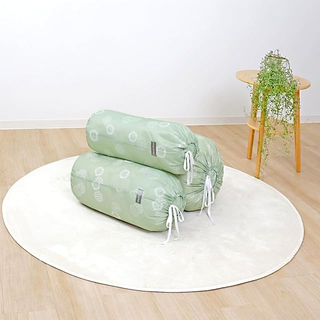 【商品仕様】:サイズ/約直径35×高さ55cm、カラー/グリーン、材質/ポリエステル、内容/2枚、収納目安(1枚あたり)/シングルサイズの羽毛布団なら1~2枚