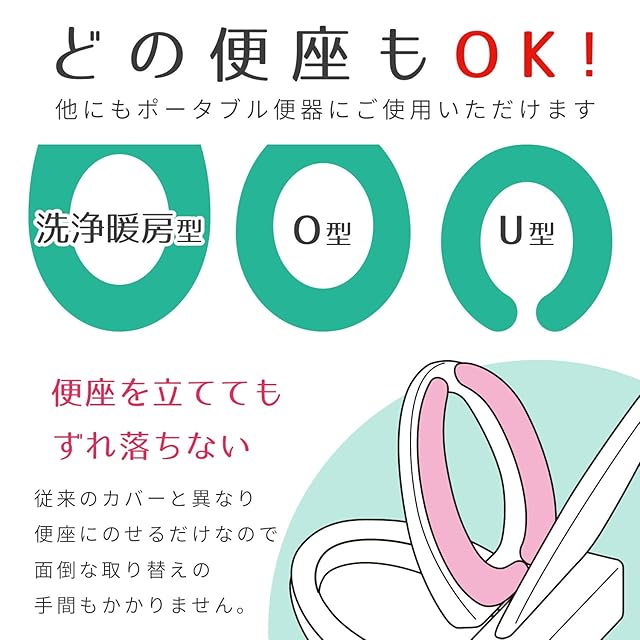 しっかりと吸着するので、便座を立ててもずれ落ちません。洗浄暖房型、O型、U型、ポータブル、どの便座にも対応できます。