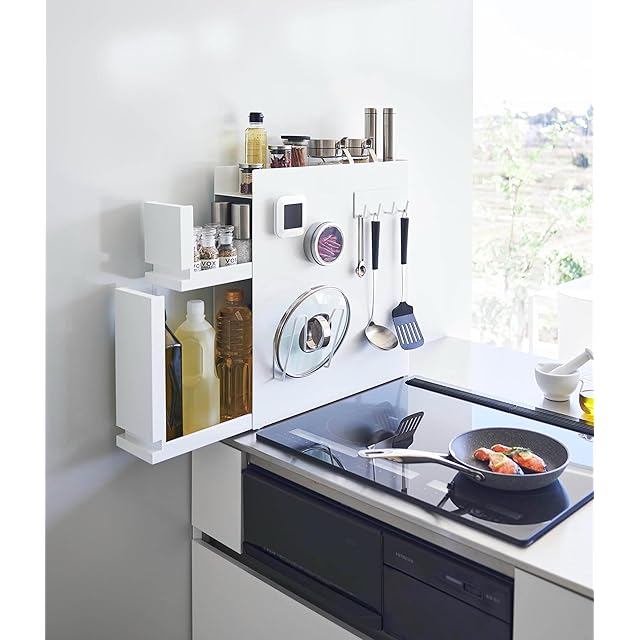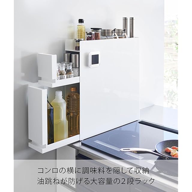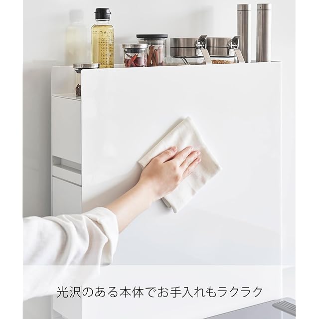 商品名:山崎実業(Yamazaki) 【 完成品 ストッパーのみ要取付 】 隠せる 調味料ラック 2段 ホワイト 約W12.5×D50~93×H52.5cm タワー tower 大容量 引き出し式 コンロ横 キッチンラック 4334