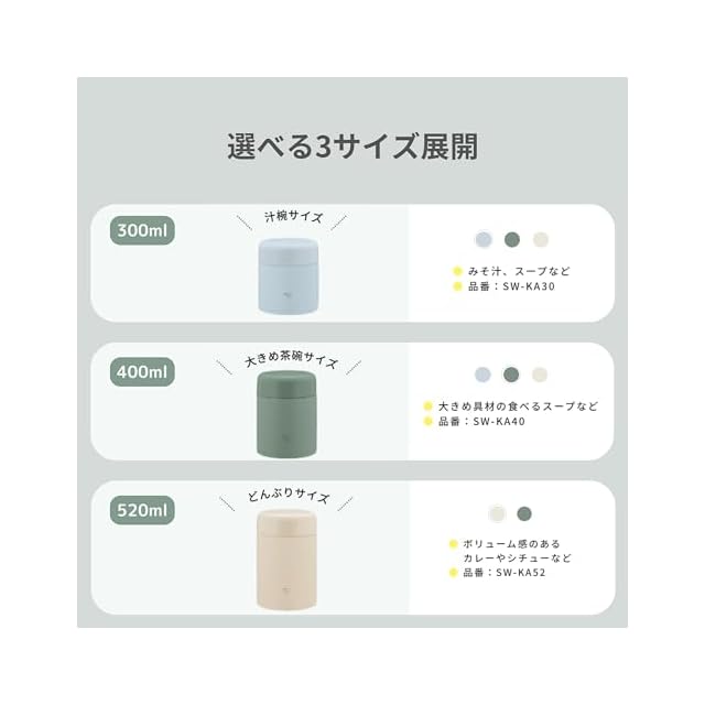 商品名:象印 スープジャー 400ml 大きめ茶碗サイズ 【おいしく保温・保冷】 広口 マットグリーン SW-KA40-GM