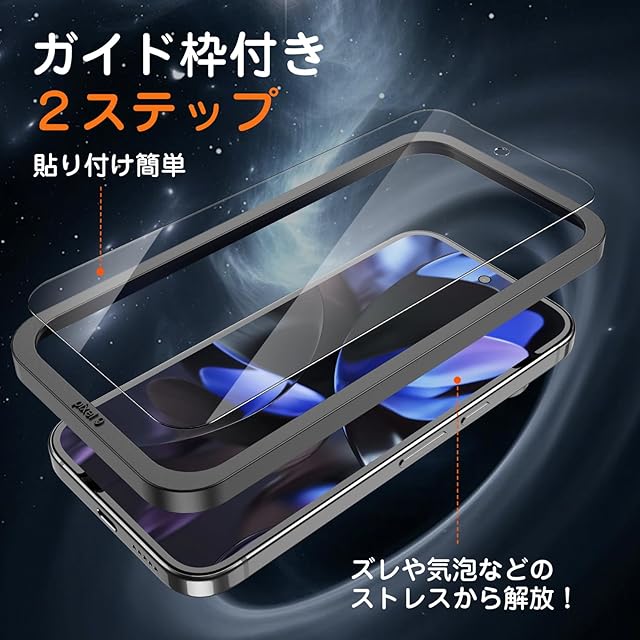 【貼り付け簡単&ガイド枠付き】 2ステップだけで、初心者として完璧に貼り付け!画面に置くだけでキレイに貼れ、気泡も抜けやすい。CNC彫刻加工を採用されたガイド枠はPixel 9 Proの画面にぴったりして、ズレなどのストレスから解放!