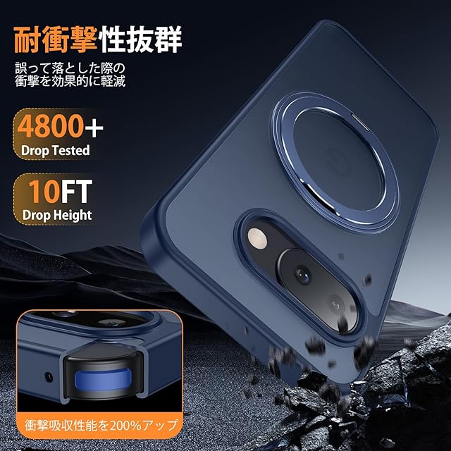 Google Pixel 9a 用 ケース Magsafe対応 ワイヤレス充電 360°回転スタンド 縦横両対応 Gunwon スマホケース グーグル ピクセル 9a 米軍規格 耐衝撃 半透明 マット感 マグセーフ 防指紋 リング マグネット搭載 ぐーくるぴくせる9a カバー「ブルー」