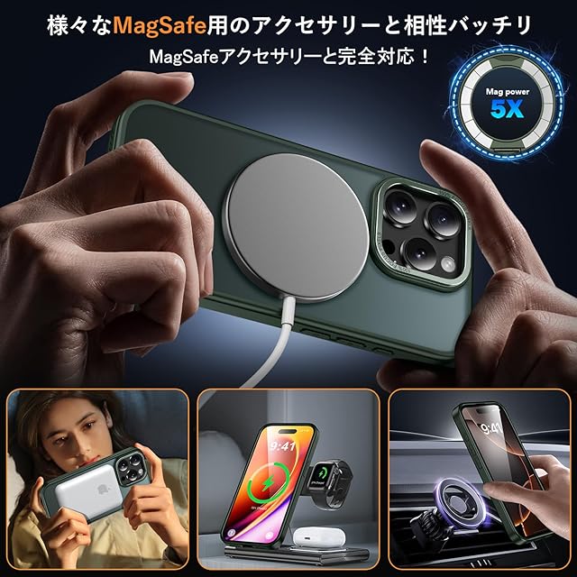 【MagSafe対応・磁力アップグレード】:強力なN52磁石を搭載しており、磁石吸着力は従来より10倍高め、ケースを装着したまま高速ワイヤレス充電が可能です、充電時の熱を周囲に発散して。Magsafe充電がかつてないほど簡単にできます!強い磁力により車運転中の激しい振動でもMagsafe車載ホルダーから外れることなく、市販のあらゆるMagsafeアクセサリーに簡単対応!いくら振っても落ちないので、充電しながらゲームをやっても問題なし!【 iphone 11 Pro Max 用 ケース アイフォン11Pro Max 用 ケース アイホン11プロマックス 用ケース】