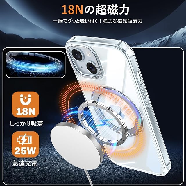 【MagSafe対応・磁力アップグレード】:強力なN52磁石を搭載しており、磁石吸着力は従来より10倍高め、ケースを装着したまま高速ワイヤレス充電が可能です、充電時の熱を周囲に発散して。Magsafe充電がかつてないほど簡単にできます!強い磁力により車運転中の激しい振動でもMagsafe車載ホルダーから外れることなく、市販のあらゆるMagsafeアクセサリーに簡単対応!いくら振っても落ちないので、充電しながらゲームをやっても問題なし!【 iphone 15 用 ケース アイフォン15 用 ケース アイホン15用ケース】