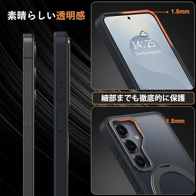 【MagSafe対応・磁力アップグレード】:強力なN52磁石を搭載しており、磁石吸着力は従来より10倍高め、ケースを装着したまま高速ワイヤレス充電が可能です、充電時の熱を周囲に発散して。Magsafe充電がかつてないほど簡単にできます!強い磁力により車運転中の激しい振動でもMagsafe車載ホルダーから外れることなく、市販のあらゆるMagsafeアクセサリーに簡単対応!いくら振っても落ちないので、充電しながらゲームをやっても問題なし!【Galaxy S25 用 ケース ギャラクシー S25 用 ケース GalaxyS25用ケース】