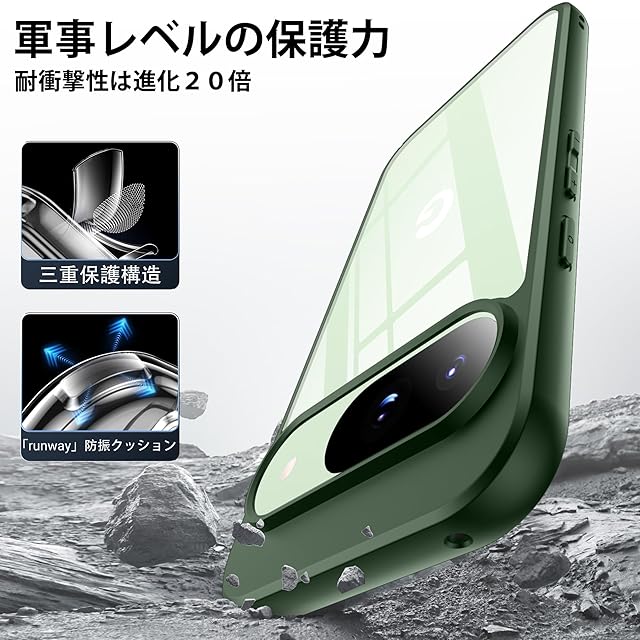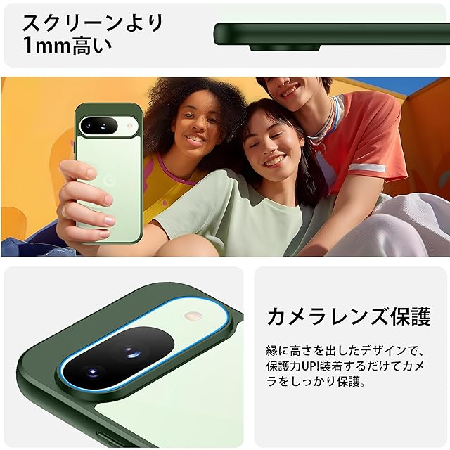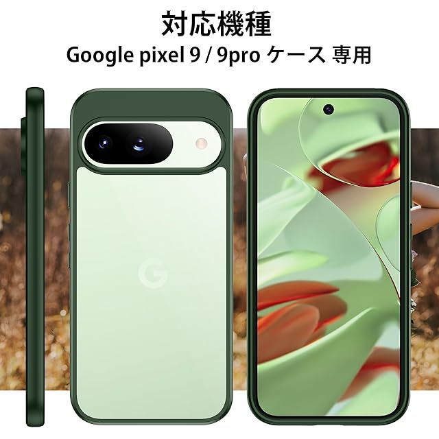 商品名:Google Pixel 9/9pro ケース グリーン 耐衝撃 ガラスフィルム保護付き pixel9ケース 米軍MIL規格 耐久性 黄変防止 薄型 ワイヤレス充電対応 スマホケース ストラップホール付き ピクセル9 カバー 绿 gogorelax