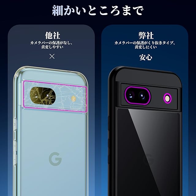 【高い透明度・黄変に強い】高解像度素材を用いた超高透明度のクリアケースは、pixel8aのリアルな色と高級感を鮮明に表現し、本来の美しさを楽しむことができます。また、最新の黄変防止技術を採用することで、ケースを長時間使用しても鮮明で透明性を保ち、日常使用時の指紋や油汚れなどによる損失を軽減することができます。