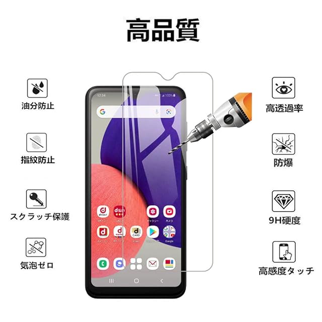 商品名:【2枚セット】対応 galaxy a22 5g SC-56B/Galaxy A23 5G SCG18 用の ガラスフィルム SC-56B 強化ガラス液晶保護フィルム 硬度9H /高透過率/2.5D丸縁加工/飛散防止/傷防止/耐指紋/気泡ゼロ/撥油性/自動吸着/保護フィルム(galaxy a22)