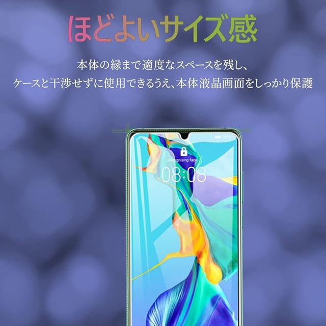 商品名:【2枚セット】対応 Huawei P30 用の ガラスフィルム Huawei P30 強化ガラス液晶保護フィルム硬度9H /高透過率/2.5D丸縁加工/飛散防止/傷防止/耐指紋/気泡ゼロ/撥油性/自動吸着/保護フィルム(Huawei P30)