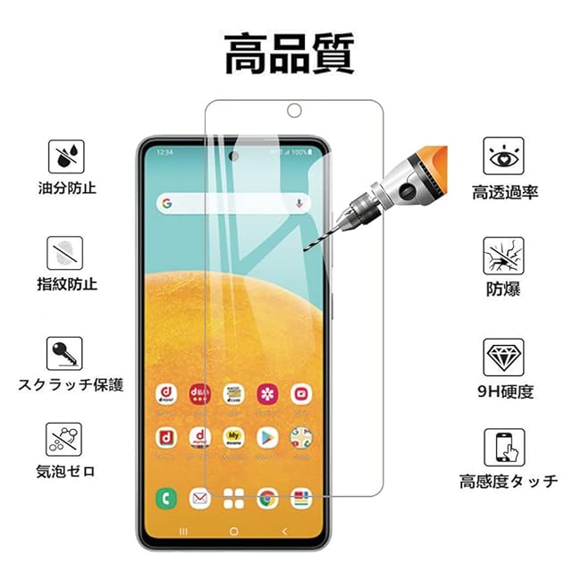 商品名:【2枚セット】対応 Galaxy A52 5G SC-53B 用の ガラスフィルム Galaxy A52 強化ガラス液晶保護フィルム日本旭硝子素材/硬度9H /高透過率/2.5D ラウンドエッジ加工/飛散防止/傷防止/耐指紋/気泡ゼロ/撥油性/自動吸着/保護フィルム(Galaxy A52)