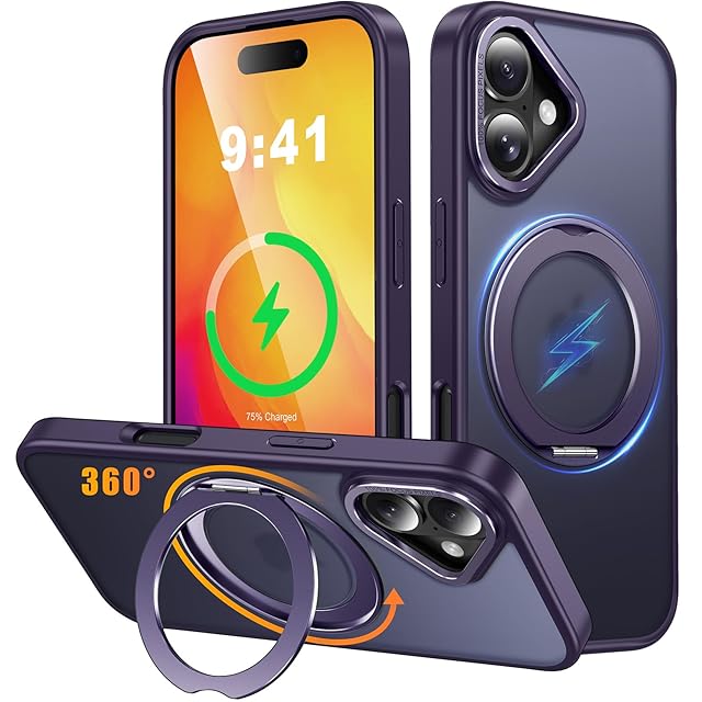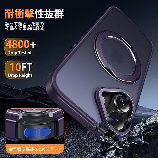 商品名:iPhone 16 Plus 用 ケース Magsafe対応 ワイヤレス充電 360°回転スタンド 縦横両対応 Gunwon スマホケース iphone16 Plus 用 米軍規格 耐衝撃 半透明 マット感 マグセーフ 防指紋 リング マグネット搭載 アイフォン16プラス 用 カバー「パープル」