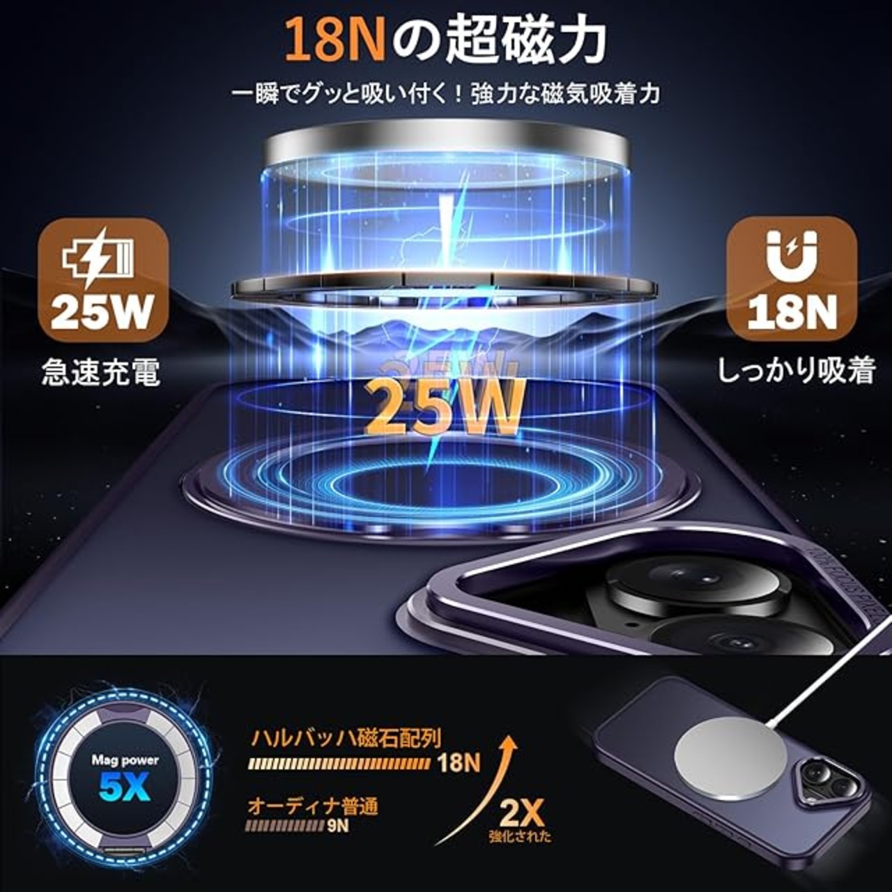 【MagSafe対応・磁力アップグレード】:強力なN52磁石を搭載しており、磁石吸着力は従来より10倍高め、ケースを装着したまま高速ワイヤレス充電が可能です、充電時の熱を周囲に発散して。Magsafe充電がかつてないほど簡単にできます!強い磁力により車運転中の激しい振動でもMagsafe車載ホルダーから外れることなく、市販のあらゆるMagsafeアクセサリーに簡単対応!いくら振っても落ちないので、充電しながらゲームをやっても問題なし!【 iphone 16 Plus 用 ケース アイフォン16Plus 用 ケース アイホン16プラス用ケース】