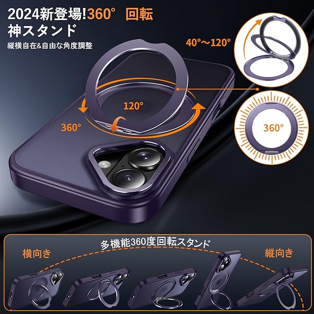 【多機能360度!縦も横も思いのまま!】:背面に搭載された嵌め込み式リングは、安定したアルミ合金製の円形スタンドを採用しており、従来のリングと比較して滑りにくく、安定したグリップを提供します。360°回転スタンド機能により、縦置き・横置きどちらの状態でも安定して利用でき、0°~ 120°の間で多角度自由に調整できます。動画視聴やFaceTimeを利用する際には、両手を解放し。外出先でも手軽に使用でき、リングやスタンドを持ち歩く必要がない。ケースを開けるだけでスタンドの完成!指にかければリングも便利に使用でき!ケースを閉じれば背面はスマートに平坦に。無限の使い方が可能で、機能性を重視する方にはぜひ手に取ってみてください!【 iphone 16 Plus 用 ケース アイフォン16Plus 用 ケース アイホン16プラス用ケース】