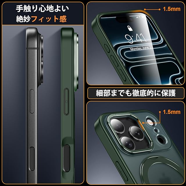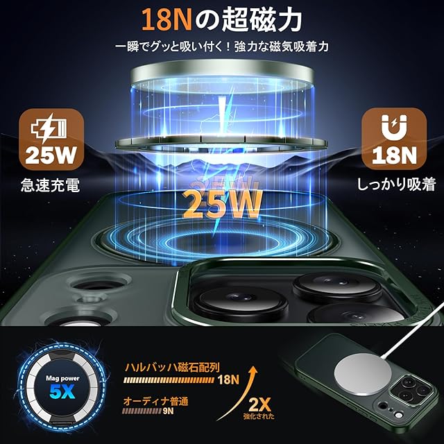 【MagSafe対応・磁力アップグレード】:強力なN52磁石を搭載しており、磁石吸着力は従来より10倍高め、ケースを装着したまま高速ワイヤレス充電が可能です、充電時の熱を周囲に発散して。Magsafe充電がかつてないほど簡単にできます!強い磁力により車運転中の激しい振動でもMagsafe車載ホルダーから外れることなく、市販のあらゆるMagsafeアクセサリーに簡単対応!いくら振っても落ちないので、充電しながらゲームをやっても問題なし!【iPhone 17 Pro 用 ケース あいふぉん 17 Pro 用 ケース アイホン 17 プロ 用ケース】
