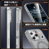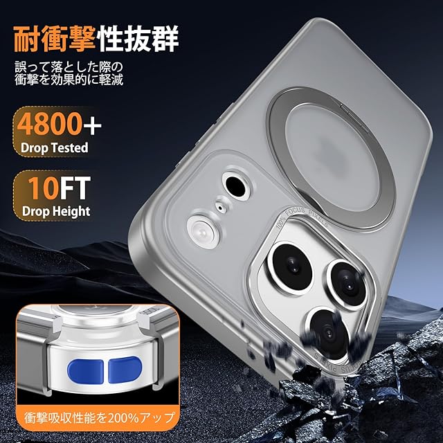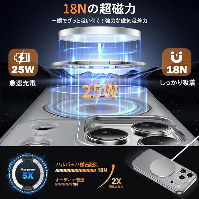 【MagSafe対応・磁力アップグレード】:強力なN52磁石を搭載しており、磁石吸着力は従来より10倍高め、ケースを装着したまま高速ワイヤレス充電が可能です、充電時の熱を周囲に発散して。Magsafe充電がかつてないほど簡単にできます!強い磁力により車運転中の激しい振動でもMagsafe車載ホルダーから外れることなく、市販のあらゆるMagsafeアクセサリーに簡単対応!いくら振っても落ちないので、充電しながらゲームをやっても問題なし!【iPhone 17 Pro 用 ケース あいふぉん 17 Pro 用 ケース アイホン 17 プロ 用ケース】