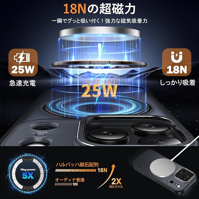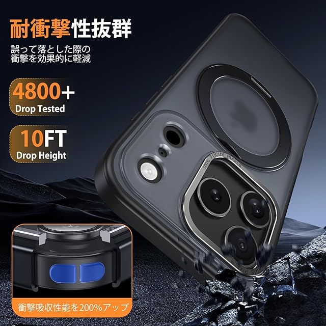 【MagSafe対応・磁力アップグレード】:強力なN52磁石を搭載しており、磁石吸着力は従来より10倍高め、ケースを装着したまま高速ワイヤレス充電が可能です、充電時の熱を周囲に発散して。Magsafe充電がかつてないほど簡単にできます!強い磁力により車運転中の激しい振動でもMagsafe車載ホルダーから外れることなく、市販のあらゆるMagsafeアクセサリーに簡単対応!いくら振っても落ちないので、充電しながらゲームをやっても問題なし!【iPhone 17 Pro Max 用 ケース あいふぉん 17 Pro Max 用 ケース アイホン 17 プロ マクス 用ケース】