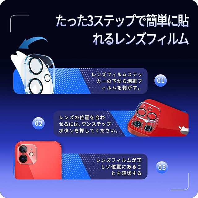 商品名:対応 iPhone 12 カメラフィルム 【3枚セット-国産旭硝子素材】 対応 iphone12 レンズフィルム アイホン 12 カメラ保護 指紋防止 いpほね12 強化ガラス レンズ 保護カバー カメラカバー 全面保護 2眼レンズ保護 (硬度9H 耐衝撃 キズ防止 露出オーバー防止 高透過率 防滴 防塵 貼り付け簡単 自動吸着 気泡ゼロ )