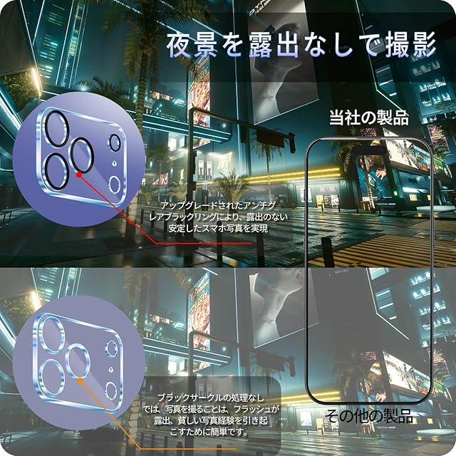 ☞【透明度99%】 新しくアップグレードした光学プロジェクション技術を使用して、より高い光透過率があり、超クリアな視覚体験を与えます。同時に、露出過度を避けるために、フラッシュの穴に黒いゴムを加えます、フラッシュ使用時に光が乱反射、写真が白っぽくなる現象を軽減します。