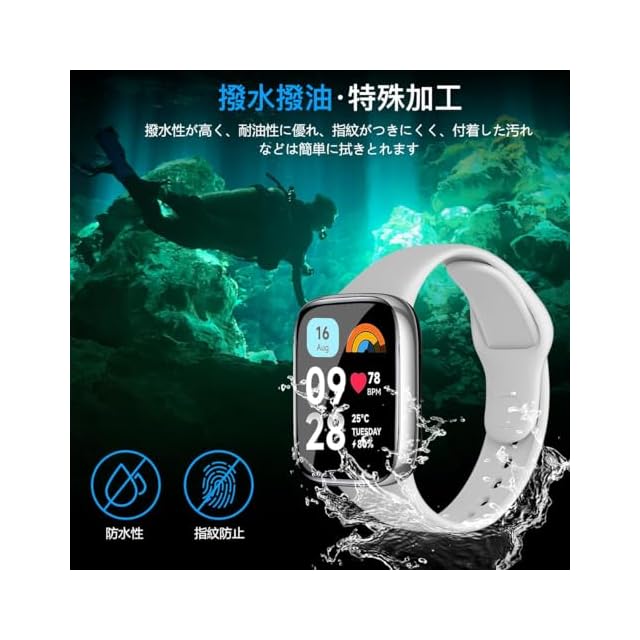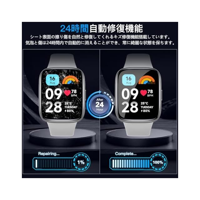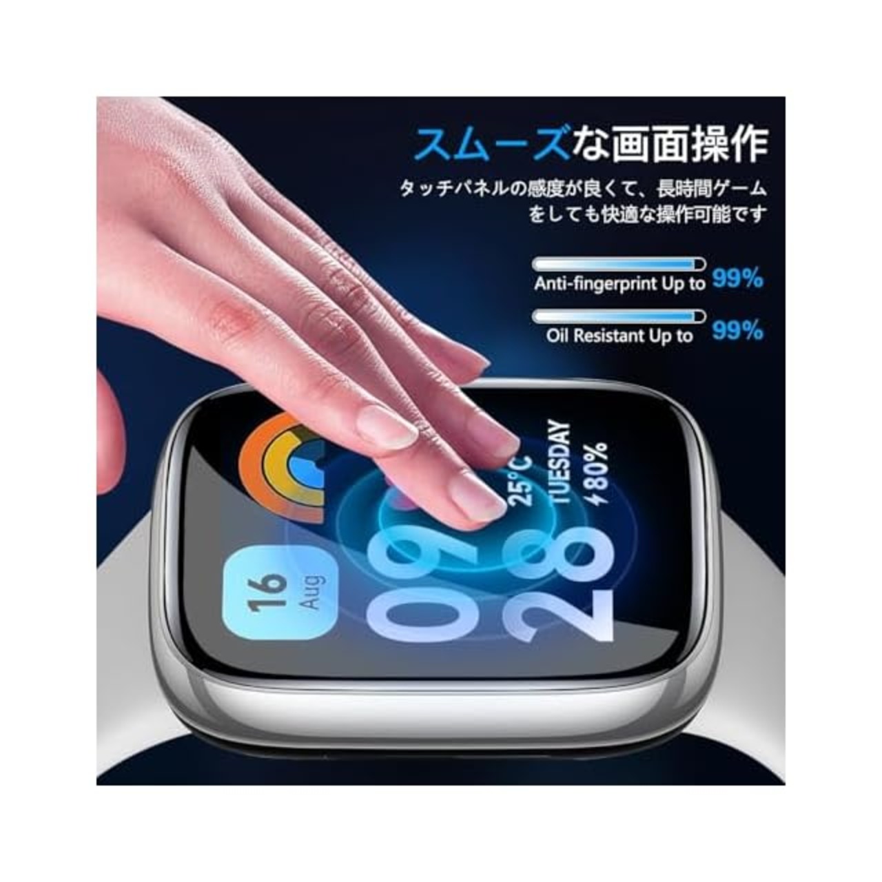 <b>【製品仕様】</b><br><b>対応機種:</b>Xiaomi Redmi Watch 3 Active<br><b>素材:</b>柔軟性PMMA製素材<br><b>透過率:</b>99%<br><b>厚さ:</b>0.16mm超薄型<br><b>★【24時間自動修復技術】</b><br>優れた伸縮性を持っていて、フィルム表面の細いキズと貼り付け時に小さい気泡が発生てしまった場合、通常24時間内で消えます。<br><b>★【超高透過率】</b><br>透過率は約99%に達し、 画質も損なわないです。見た目・触り心地ともに何も付けてない状態と殆ど変わりません。<br>厚さ0.16mmの超極薄で,ハイビジョンの美しい画像を再現します。<br><b>★【指紋防止& 撥水撥油】</b><br>フィルムには撥油コーティングが施されており、指紋や汚れなどに強くなめらかな操作感を実現、<br>付着した汚れなどは簡単に拭きとれます。<br><b>★【スムーズな画面操作】</b><br>タッチパネルの感度が良くて、長時間ゲームをしても快適な操作可能です。<br><b>【パッケージ内容】</b><br>3×強化ガラス保護フィルム<br>1×気泡除去ヘラ<br>1x取扱説明書<br><b>【使い方】</b><br></b><br>ステップ1:まず、付属の緑色の「1」ウェットシートでスクリーンに付いた汚れを拭きとります。<br>ステップ2:次に、ピンク色の「2」ドライシートで水滴や指紋などを拭きとります。<br>ステップ3:付属の青色シールを使って、ホコリやごみをきれいに拭きとります。<br>ステップ4:フィルムを設備に貼ります。揭下透明的胶卷贴纸。液晶の上に軽く置きながら、位置を調整してください。埃が付かないように注意してください。<br>ステップ5:中央から外の方に、押しながら貼り付けます、さらに気泡除去ヘラで余分な気泡を拭き取る。<br><b>【安心】</b><br>こちらの Xiaomi Redmi Watch 3 Active 用 強化ガラス フィルムには180日間の安心ながあります。<br>お客様にお届け前に検査スタッフが1枚づつ品質チェックしておりますが、ご使用前に万が一、不良品がお手元に届いた場合は返金、交換、返品等の対応を取らせて頂きますので、安心してご注文ください。