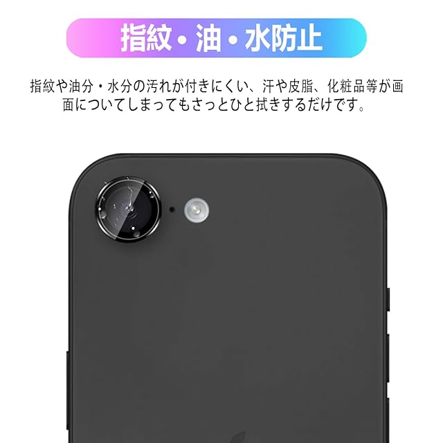 <b>【製品仕様】</b><br><b>対応機種:</b>iPhone 16E <br><b>硬度:</b>9H<br><b>透過率:</b>99%<br><b>厚さ:</b>0.26mm超薄型<br><b>★【強硬度9H 日本旭硝子】</b><br>高品質なの旭硝子製、業界最高レベルの硬度を誇ります。 高温クエンチ処理を経て, このレンズプロテクターは、通常のガラスよりも5倍高い125MPaの圧縮強度を有する。<br>万が一破損した際も飛散防止加工によって破片はほとんど飛び散らない安全性の高いガラスになっています。<br><b>★【超高透過率】</b><br>透過率は約99%に達し、 画質も損なわないです。見た目・触り心地ともに何も付けてない状態と殆ど変わりません。<br>厚さ0.26mmの超極薄で,ハイビジョンの美しい画像を再現します。<br><b>★【指紋防止& 撥水撥油】</b><br>カメラフィルムには撥油コーティングが施されており、指紋や汚れなどに強くなめらかな操作感を実現、<br>付着した汚れなどは簡単に拭きとれます。<br><b>【パッケージ内容】</b><br>2×強化カメラ保護フィルム<br><b>【使い方】</b><br>1.スマホ電源をオフにし、カメラ保護フィルムとクリーニングクロスなどを取り出してください。<br>2.カメラの汚れを拭き取る。<br>3.ホコリ取りシートを使って、レンズに残ったホコリや布繊維を取り除きます。<br>4.カメラ保護フィルムの裏面の保護シートを剥がしてください。カメラ保護フィルムをレンズに合わせて軽く置いてください。<br>5.カメラ保護フィルムを置いた後、指でゆっくりとレンズの最初から最後までスライドします。<br>6.ガイドフレームを取り外し、完成しました。<br><b>【安心】</b><br>こちらの アイフォン16E 用レンズフィルムには180日間の安心ながあります。<br>お客様にお届け前に検査スタッフが1枚づつ品質チェックしておりますが、ご使用前に万が一、不良品がお手元に届いた場合は返金、交換、返品等の対応を取らせて頂きますので、安心してご注文ください。