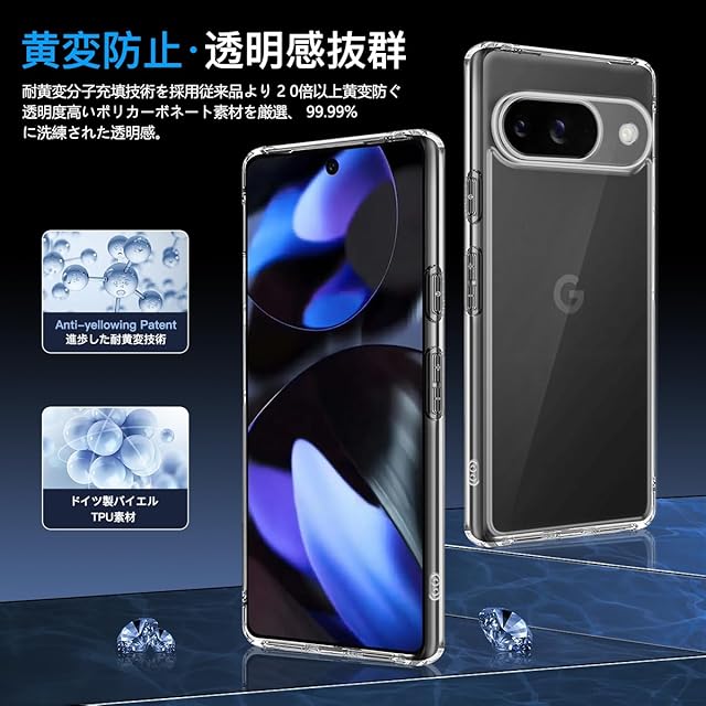 【透明感抜群·黄変防止】 環境に優しく、無毒無味の高品質素材採用して抗酸化処理が施されており、何年も黄変することはありません。また、超精度の透光分子を持ち、背面の光透過率は99%に達した、Google Pixel 9 本来の美しいデザインとカラーをそのままに楽しめます。