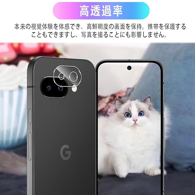 【高透過率】 対応 グーグルピクセル9a カメラ保護フィルム 高透過率で、元々の画質を損なう事無く、色鮮やかに映し、本来の美しい画面を鮮明に保ち続けます。