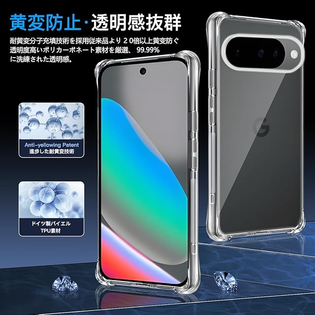 【透明感抜群·黄変防止】 環境に優しく、無毒無味の高品質素材採用して抗酸化処理が施されており、何年も黄変することはありません。また、超精度の透光分子を持ち、背面の光透過率は99%に達した、google pixel 10 / pixel 10 pro 本来の美しいデザインとカラーをそのままに楽しめます。