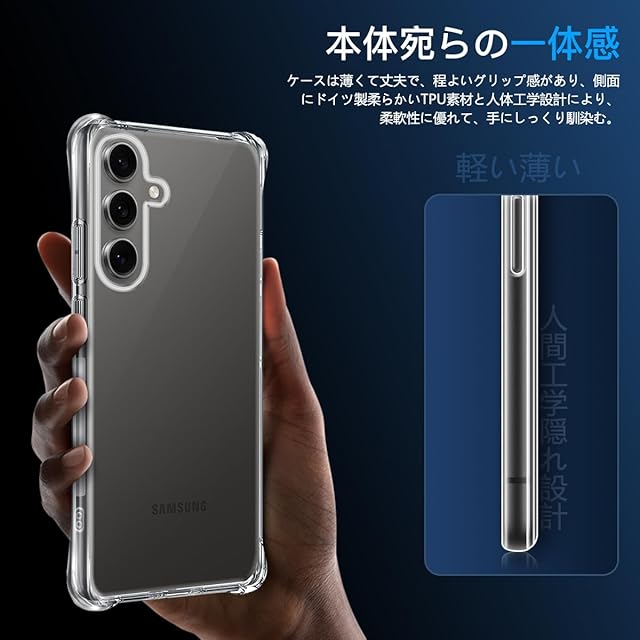 【透明感抜群·黄変防止】 環境に優しく、無毒無味の高品質素材採用して抗酸化処理が施されており、何年も黄変することはありません。また、超精度の透光分子を持ち、背面の光透過率は99%に達した、Galaxy S24 FE 本来の美しいデザインとカラーをそのままに楽しめます。