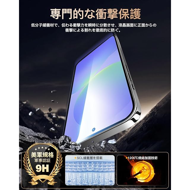 【9H硬度 飛散防止】スマホフィルムとレンズ保護フィルムはすべて旭硝子で作られており、スマホ保護フィルムの中で高レベルの9H硬度に達しています。手にフィットして持ちやすく滑りにくいので落ちにくいです。万が一落ちてもフィルムが衝撃を吸収してくれるので、スクリーンの損傷を低限まで抑えられます。また、特殊な飛散防止設計により、ガラスが割れても飛散しないため。