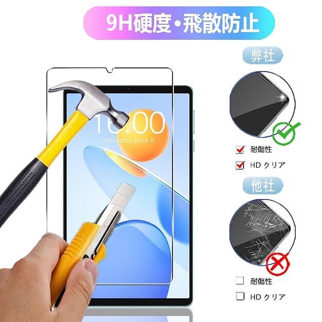 【9H硬度 飛散防止】 対応 BNCF Bpad Mini SE ガラスフィルム はす旭硝子で作られており、タブレット保護フィルムの中で高レベルの9H硬度に達しています。手にフィットして持ちやすく滑りにくいので落ちにくいです。万が一落ちてもフィルムが衝撃を吸収してくれるので、スクリーンの損傷を低限まで抑えられます。また、特殊な飛散防止設計により、ガラスが割れても飛散しないため。