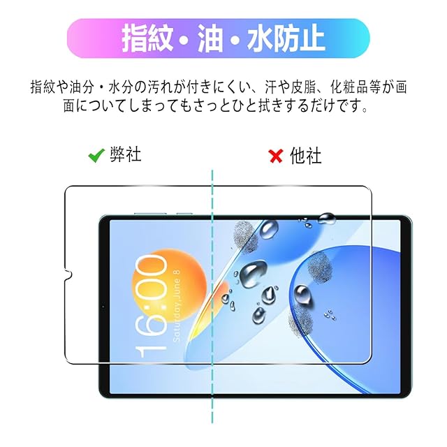 【指紋、油、水防止】ガラスフィルムの表面特殊な疎油処理されているため、画面感度に影響しなくて、簡単にタッチすることができ、指触りが抜群です。指紋や油分·水分の汚れが付きにくい、汗や皮脂、化粧品等が画面についてしまってもさっとひと拭きするだけです。