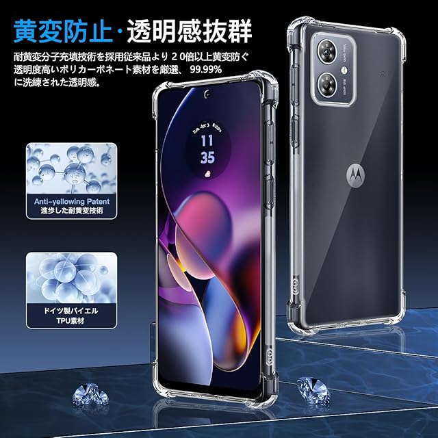 【透明感抜群·黄変防止】 環境に優しく、無毒無味の高品質素材採用して抗酸化処理が施されており、何年も黄変することはありません。また、超精度の透光分子を持ち、背面の光透過率は99%に達した、Moto G64 5G / Moto G64y 5G 本来の美しいデザインとカラーをそのままに楽しめます。