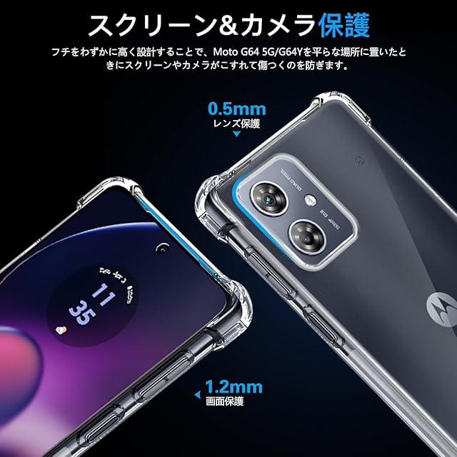 <b>★【製品仕様】</b><br>対応機種:Moto G64 5G / Moto G64y 5G 用クリアケース<br>透明度や衝撃保護に優れて、薄さと強度のバランスを取り、日常の使い心地よい、細部まで追求したクリアケース。<br><b>★【抜群な耐衝擊性】</b><br>いくら気をつけていても落とす時がある!でも大丈夫!厳密なテストにより、モトローラ G64 / モトローラ G64yが全面的に保護されることを実証しました。<br>2Mの高さから26回以上落としても本体は綺麗に無傷!また、四隅には高耐震クッションを搭載しており、高い耐衝撃性を誇り、Moto G64 5G / Moto G64y 5Gを全方位からしっかりと守ります。<br><b>★【超高透過率&黄変防止】</b><br>99%に持ち上げた透明感が本体の美しさをそのまま、本体の崇高な美しさと高級感を損なわなく。<br>ドイツ製バイエルTPU素材や高品質のPC素材を採用、スマホケースの黄変を効果的に防ぐことができます。<br><b>★【指紋防止&撥水撥油】</b><br>ケースには撥油コーティングが施されており、指紋や汚れなどに強くなめらかな操作感を実現、付着した汚れなどは簡単に拭きとれます。<br>背面に水紋を防ぐため、バックと本体の間に小さいドットを配置し、水紋を有効防止!<br><b>★【ワイヤレス充電対応】</b><br>ケースを付けたままでワイヤレス充電OK可能です。背面は放熱性良いポリカーボネート素材を使い、効果的に熱を放散し、バッテリーにも優しいです。<br>また、コネクタに干渉しにくい設計で、ケースをつけたままコネクタへの接続が可能です。<br><b>★【絶妙バランス・快適操作】</b><br>クリアケースの保護性能を保ちながら、スマートさを損なわないよう、このケースは薄さと強度のバランスを取り、手にフィットする程よい厚みで、<br>快適さが保ち、ボタンも押しやすく、最適な設計で作り出す。加工精度はピッタリ!スイッチ類、カメラ位置も含めて寸法はバッチリです!<br><b>★【取り付け簡単】</b><br>簡単に脱着する方法:スマホを横向きに左手で持ち。右手の親指でMoto G64 5G / Moto G64y 5Gカメラの部分を上に押しながら、右手の差し指でスマホケース右上の角を下に押し出してケースを外す。<br><b>★【安心】</b><br>こちらの Moto G64 5G / Moto G64y 5G 用クリア カバーには180日間の安心ながあります。<br>お客様にお届け前に検査スタッフが1個づつ品質チェックしておりますが、ご使用前に万が一、不良品がお手元に届いた場合は返金、交換、返品等の対応を取らせて頂きますので、安心してご注文ください。