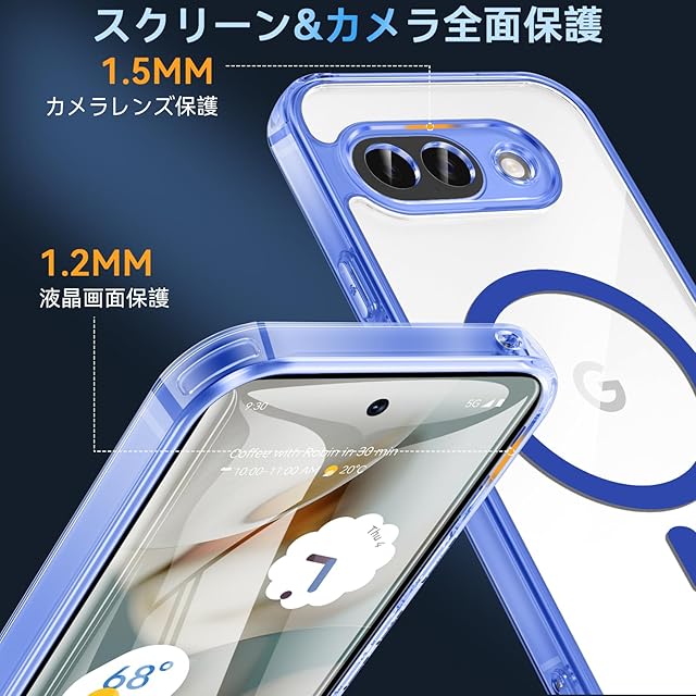 商品名:Google Pixel 9a ケース BESINPO【ガラスフィルム付き・MagSafe対応】クリア グーグル ピクセル 9a ケース 黄ばみなし ストラップホール付き 米軍MIL規格 耐衝撃 耐久性 google pixel 9a カバー マグネット搭載 マグセーフ対応 Google Pixel 9a スマホカバー 6.3インチ ブルー+クリア