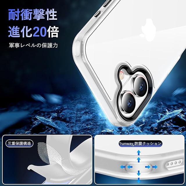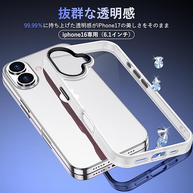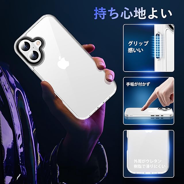 【高い透明度・黄変に強い】高解像度素材を用いた超高透明度のクリアケースは、いPhone16のリアルな色と高級感を鮮明に表現し、本来の美しさを楽しむことができます。また、最新の黄変防止技術を採用することで、ケースを長時間使用しても鮮明で透明性を保ち、日常使用時の指紋や油汚れなどによる損失を軽減することができます。