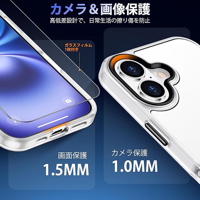 商品名:iPhone16 ケース ホワイト 耐衝撃 ガラスフィルム付き アイフォン16ケース 米軍MIL規格 耐久性 黄ばみ防止 アイホン16 ワイヤレス充電対応 あいほん16 スマホケース SGS認証 あいふぉん16 カバー 6.1インチ ストラップホール付き gogorelax