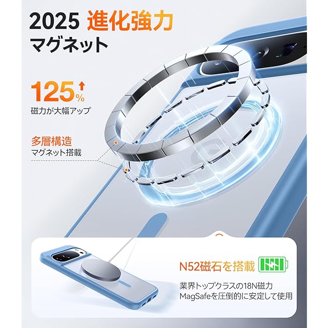 【磁石高耐久進化!吸力を60%向上!】このPixel 10用ケースは、特許の磁石技術を採用しており、スマホの磁気リングと完璧に結合し、磁力を大幅に向上させています。また、この磁石技術は耐久性が高く、磁力も強いため、Pixel 10proをしっかりと保持することができます。さらに、模倣できない磁石配置技術も採用しており、通常の磁石吸着ケースでの磁石の脱落問題を解決しています!対応機種:Google Pixel 10 用ケース Google Pixel 10pro用 ケース