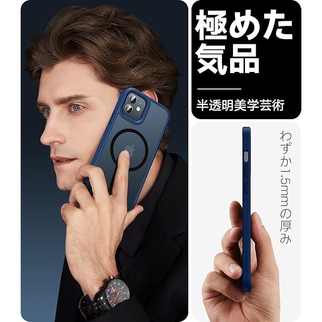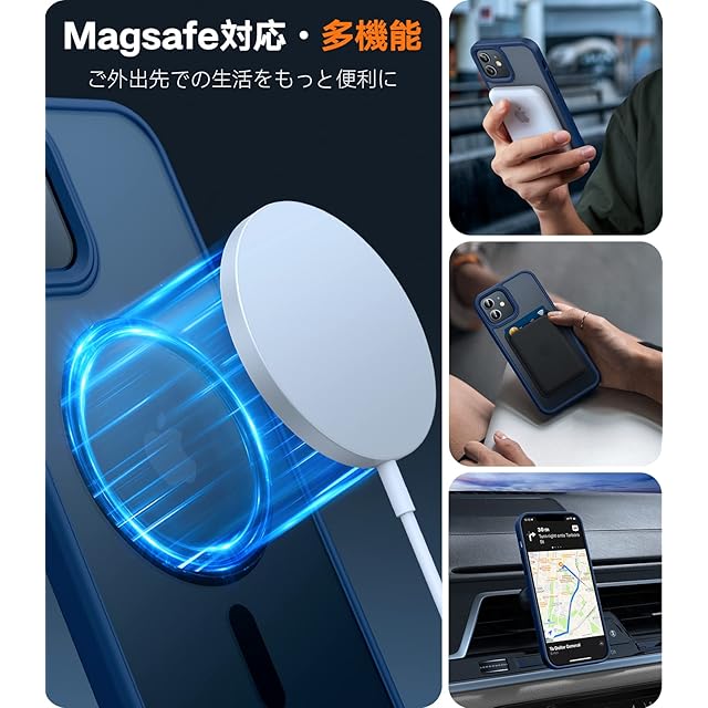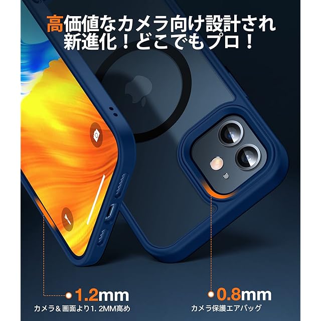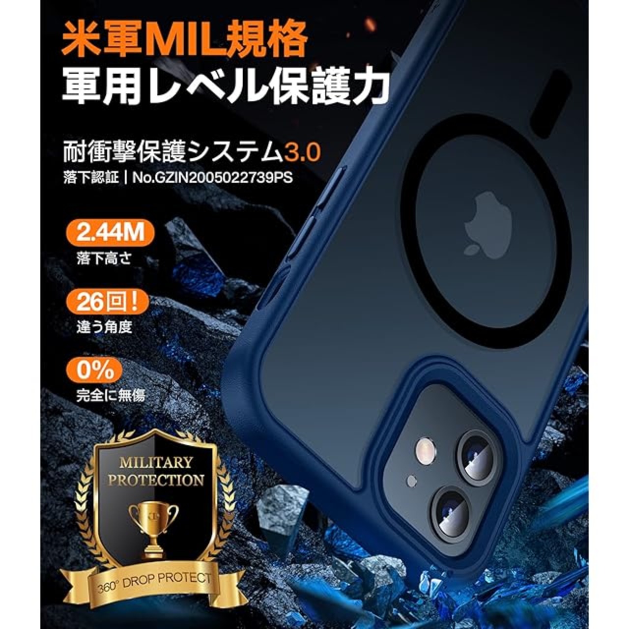 商品名:【米軍規格・MagSafe対応】TORRAS iPhone 12/12Pro 用 ケース 半透明 マグネット搭載 耐衝撃 マット感 黄ばみなし ストラップホール付き マグセーフ対応 ワイアレス充電対応 Guardian-Mag ブルー
