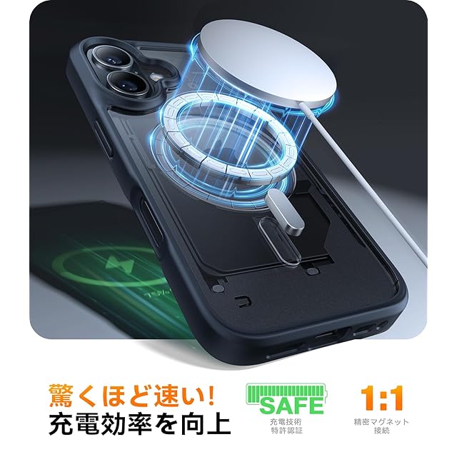 【えっ、こんなに速いの!? ワイヤレスで数分フル充電に!】面倒なケーブルとはさようなら、ワイヤレス充電がもっと楽に!iPhone 16 plus(用) には革新的な 20W ワイヤレス充電機能が搭載されており、このケースの背面にはハルバッハ特許のマグネット技術が活用されている。高い効率と安定性をし、iPhone (用)が常に十分な電力を保つ。いつでもどこでも便利な 20W ワイヤレス高速充電を手軽に楽しめる!対応機種:iPhone 16 plus 用 ケース