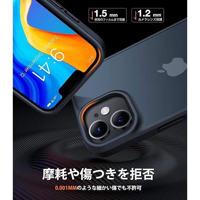 商品名:【衝撃分散構造 耐久性】 TORRAS iPhone 12 用 ケース iPhone 12 Pro 用 ケース 半透明 衝撃吸収 マット感 ストラップホール付き ボタン付属 黄ばみなし レンズ保護 6.1インチ アイフォン12 用 12 Pro用カバー ブラック「Guardian Series」