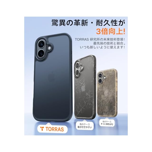 商品名:【3倍米軍MIL規格・マット仕上げ 】TORRAS iPhone 16 用 ケース 耐衝撃 半透明 マット質感 滑り止め 黄ばみ防止 米軍MIL規格 指紋防止 ストラップホール付き ボタン付属 6.1 インチ For あいふおん16ケース「Guardian Series」マット ブラック