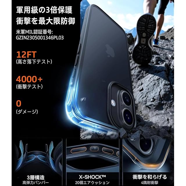 【米軍MIL規格、360°全方位保護】対応機種:For iPhone 17 ケース (6.3インチ) 3倍米軍MIL規格防護。米軍MIL認証番号:GZIN2305001346PLO3 「Guardian Series」は7年間の進化で、落下防止と保護力にこだわったTORRASの最強保護シリーズである。TORRASラボで3.66mの高さから26方向で4,000回以上の落下テストをクリアし、完全無傷を実現する!ケースの四隅にはX-SHOCKエアバッグ構造を採用しており、四辺には360°ランニングトラック型のエアクッション構造を設計。全方向・死角なしでスマートフォンを保護できる。For iPhone 17 ケース