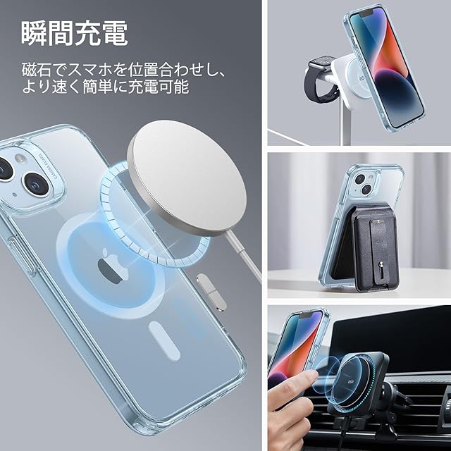 商品名:【米軍MIL規格・Magsafe対応】ESR いphone14 ケース iphone13 ケース 傷に強い背面 ワイヤレス充電 ストラップホール付き iPhone14 ケース iPhone13ケース アイフォン14 13 ケース用 HaloLock搭載 ハイブリッド磁気ケース 6.1インチ ライトブルー Classic Series
