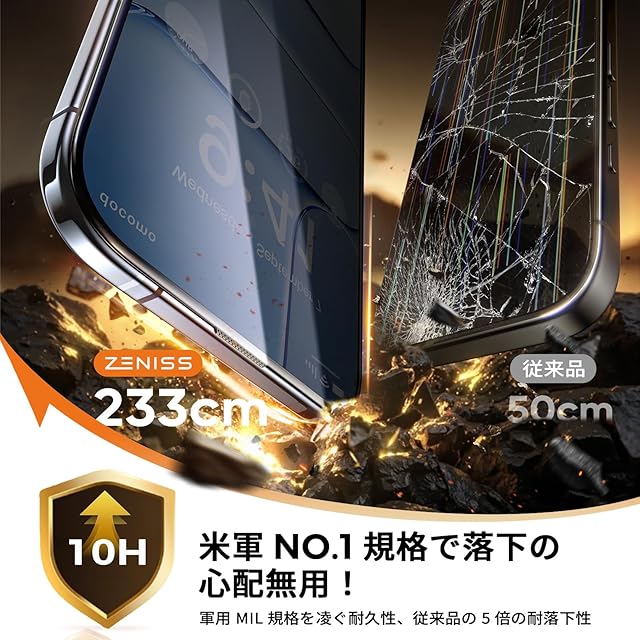 【業界トップクラスの保護性能!AGC 高硬度10H強化ガラス】Zeniss研究チーム30年の研究開発と継承された革新技術により生み出された弊社のいphone air 保護フィルム 覗き見防止 は、米軍規格の航空宇宙グレードの高アルミシリコンガラス素材を使用し、最新のNa+/K+イオン交換技術により、ガラス内部に圧縮緩衝層を形成しています1200℃で10時間の高温硬化を繰り返し強化、10H硬度レベルを実現硬度と耐衝撃性が市販のあいほん air ガラスフィルムより20倍も高いです。耐衝撃性(233cm耐落下)は市販iphone airフィルム(50cm耐落下)の4倍。衝撃や傷からスマホを最大限に守ります鍵やコインなどの鋭利な物と一緒にバッグに入れても傷がつきませんさらに、いphone air保護フィルムは破片飛散防止加工が施されており、使用者の安全を確保。全世界で1億600万枚以上を販売し、スマホ画面の破損ゼロという驚異的な実績を誇ります。