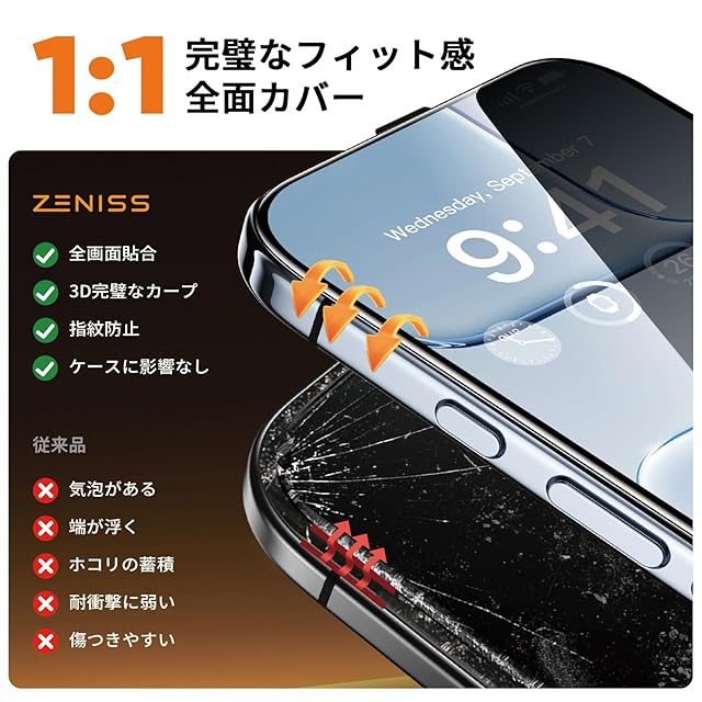 【世界初iphone Air ガラスフィルム 覗き見防止 失敗ゼロ・気泡ゼロ・ズレゼロ】iphone airフィルム貼り時の位置ずれによる繰り返しの調整、気泡、埃やゴミの残留、割れやすさ、キズつき…などのお悩み?これらの問題を解決するため、画期的なホコリ除去ガイド枠 アイフォン airガラスフィルムを開発しました。「自動位置合わせ+自動吸塵」の革新技術を搭載し、呼吸のように簡単:置くだけでスマホが正確に位置合わせされ隙なし、引くだけでで除塵ストリップが自動的にゴミを吸着し完璧に密着。手動での位置合わせ、繰り返しのはがし貼りや頑固な気泡に完全に別れを告げましょう!初心者でもプロ級の仕上がりが簡単に実現。煩雑な操作から解放され、貼り成功率UP。または使用に関するご質問がございましたら、いつでもご連絡ください。Zenissは24時間365日の技術サポートを提供し、お客様に安心してお使いいただけるよう、問題解決に尽力してまいります。
