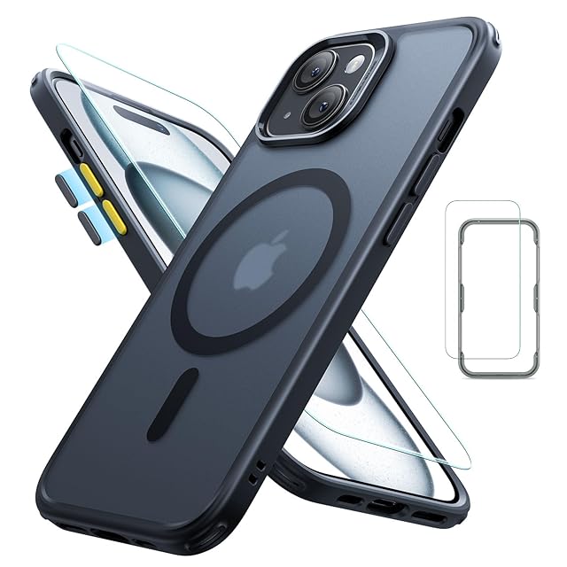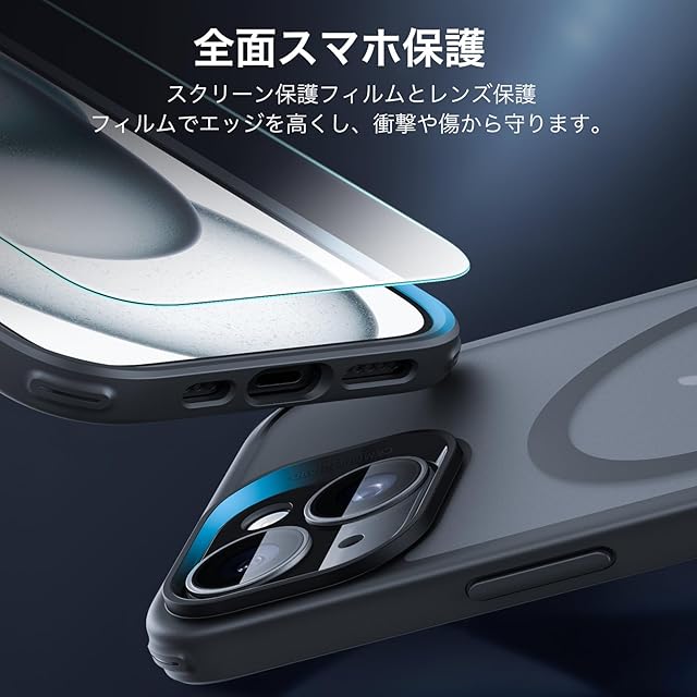 商品名:【米軍MIL規格・Magsafe対応】 ESR iPhone 15 Plus ケース セット 画面保護フィルム カメラ保護 傷に強い背面 ワイヤレス充電 ストラップホール付き いphone15plus ケース Classicシリーズ (フロストブラック)