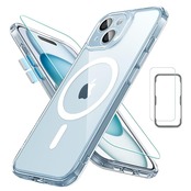 【米軍MIL規格・Magsafe対応】 ESR iPhone 15 Plus ケース セット 画面保護フィルム カメラ保護 傷に強い背面 ワイヤレス充電 ストラップホール付き Classicシリーズ いphone15plus ケース フロストブルー