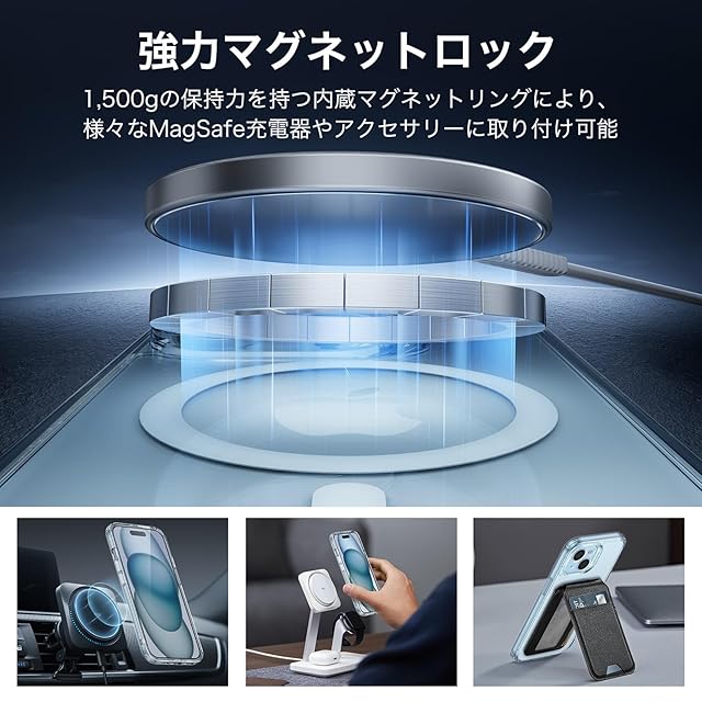 【強力吸着・MagSafe対応】ESR iphone15plus ケースは1,500 gの吸着力を持つ強力な内蔵磁石により、それにより、多種なマグネットアクセサリーとの素晴らしい組み合わせを実現でき、ガッチリ吸着する事でスマホケースを装着したiphone15plusを急速にワイヤレス充電できます
