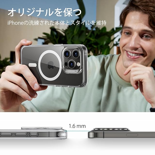 【高級磁石N52M付き・MagSafe対応】ESR iPhone 15 Pro Max 用 ケースは1,500 gの吸着力を持つ強力な内蔵磁石により、iPhone 15の8倍以上の重量を吸着可能です。それにより、多種なマグネットアクセサリーとの素晴らしい組み合わせを実現でき、ガッチリ吸着する事でスマホケースを装着した15 Pro Maxを急速にワイヤレス充電できます