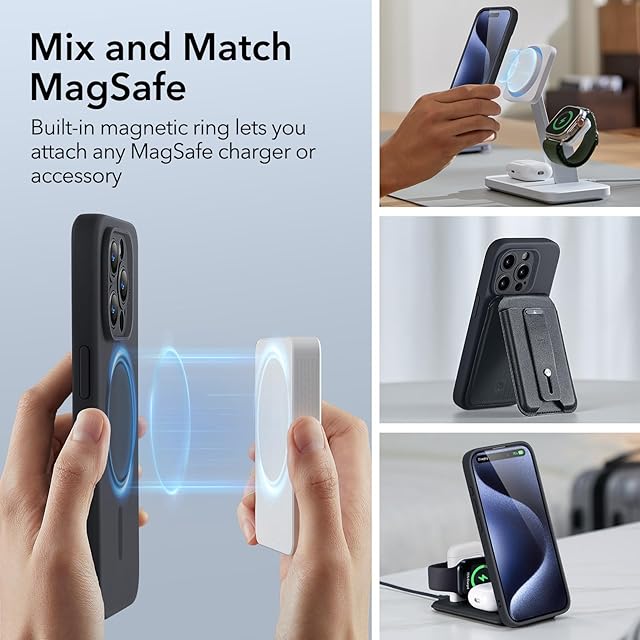 【米軍MIL規格・Magsafe対応】ESR iPhone 15 Pro ケース いphone15pro ケース マグネット充電対応 スリム シリコンケース 衝撃吸収 画面とカメラ保護 iPhone 15 Pro用 Cloudシリーズ ブラック